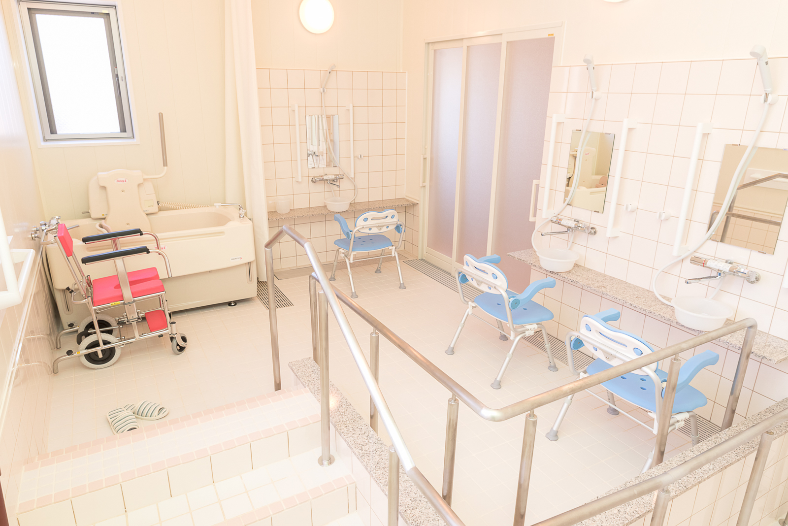 充分な広さの洗い場を3つ確保しました。ご利用の際はスタッフがしっかりと補助するので安心してご利用いただけます。